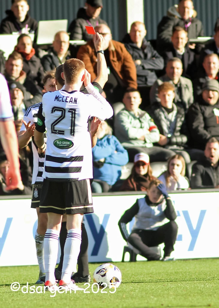 Queens' Henry Fieldson is shown the red card.