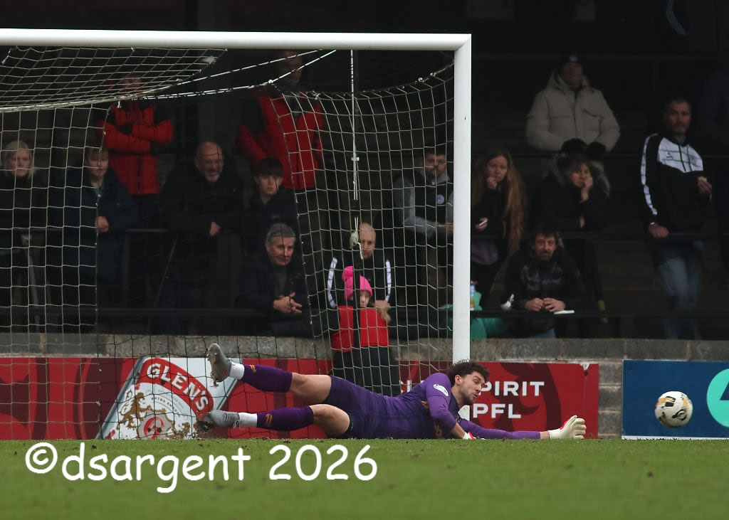 Max Thompson dives to keep Ayr ahead.