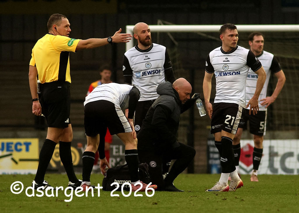 Ethan Walker receives treatment after a knock.