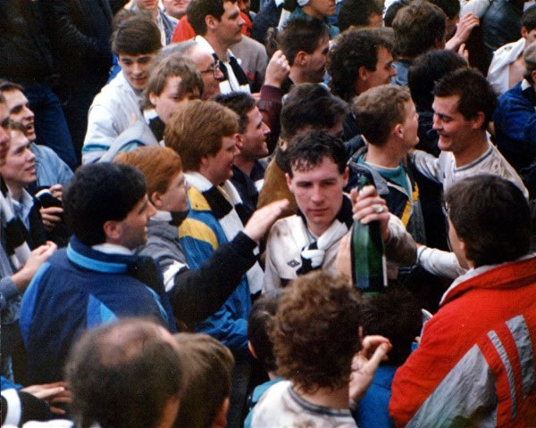 John Sludden and Kenny Wilson enjoy the champagne with fans