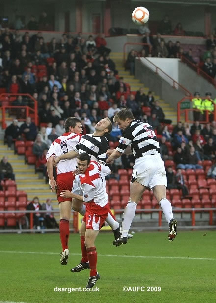 Neil McGowan and Martyn Campbell challenge at a late corner