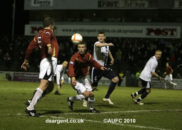 Martyn Campbell controls a bouncing ball but shoots wide