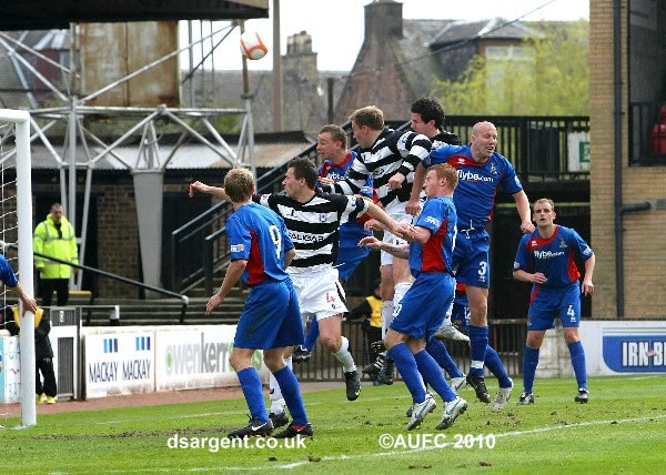 Martyn Campbell heads a corner over the bar