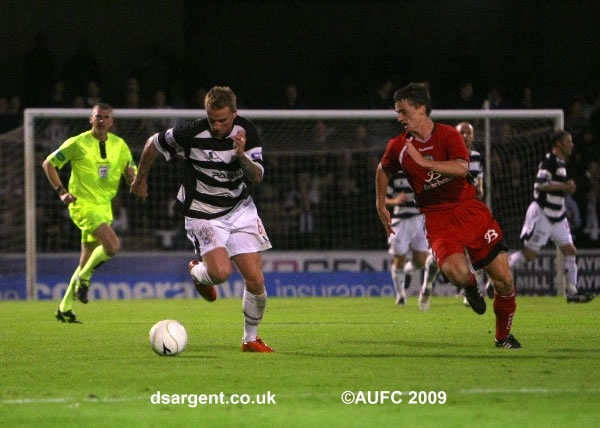 Ryan Stevenson head down in a race for possession