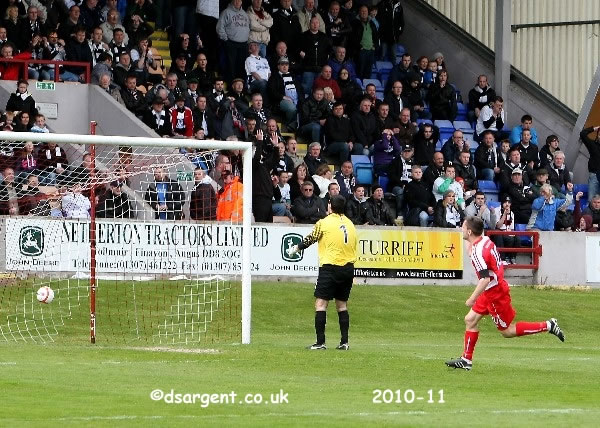 Jonathan Tiffoney's back pass rolls past Alan Martin. 1-0
