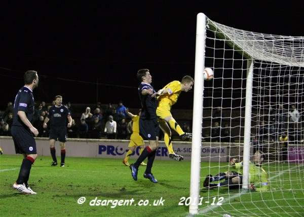 ...Andy Geggan reacts first to head the equaliser...