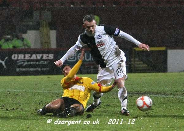 Mark Roberts controls a slippery ball