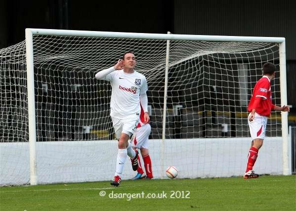 ...a happy goalscorer and the silence of the Railway End...