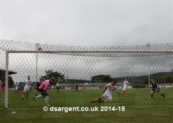 ...Nicky Devlin's cross is cleared off the line