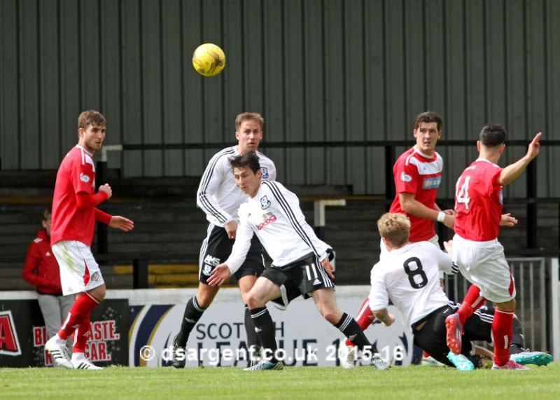 Robbie Crawford blocks a goalbound effort