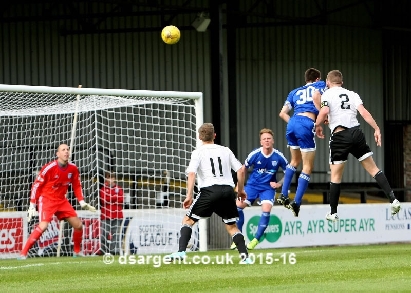 Nicky Devlin heads a corner narrowly over