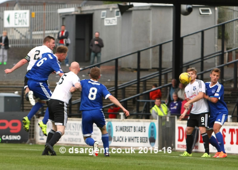 ...Nicky Devlin is first to the corner kick...