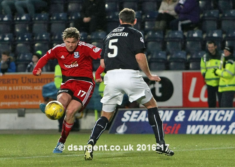 Kevin Nisbet curls a shot just wide of the far post