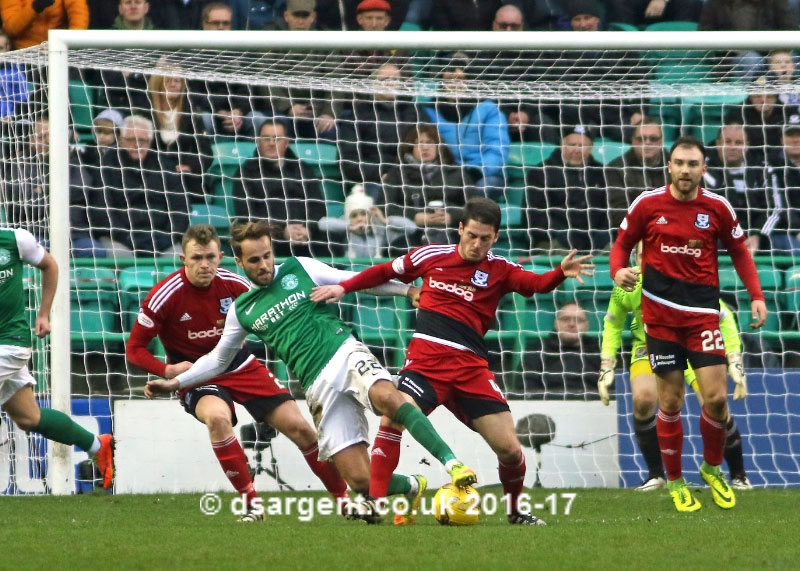 Brian Gilmour wins possession from Andrew Shinnie