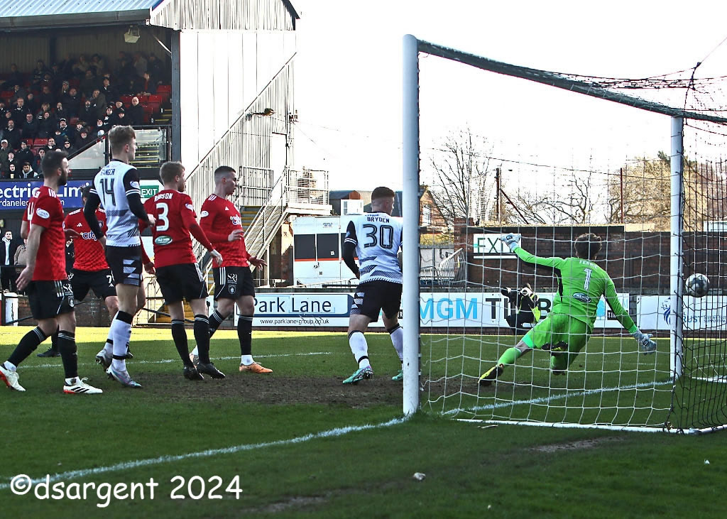 ... Jack Sanders header beats keeper Ferrie to pull a goal back ...