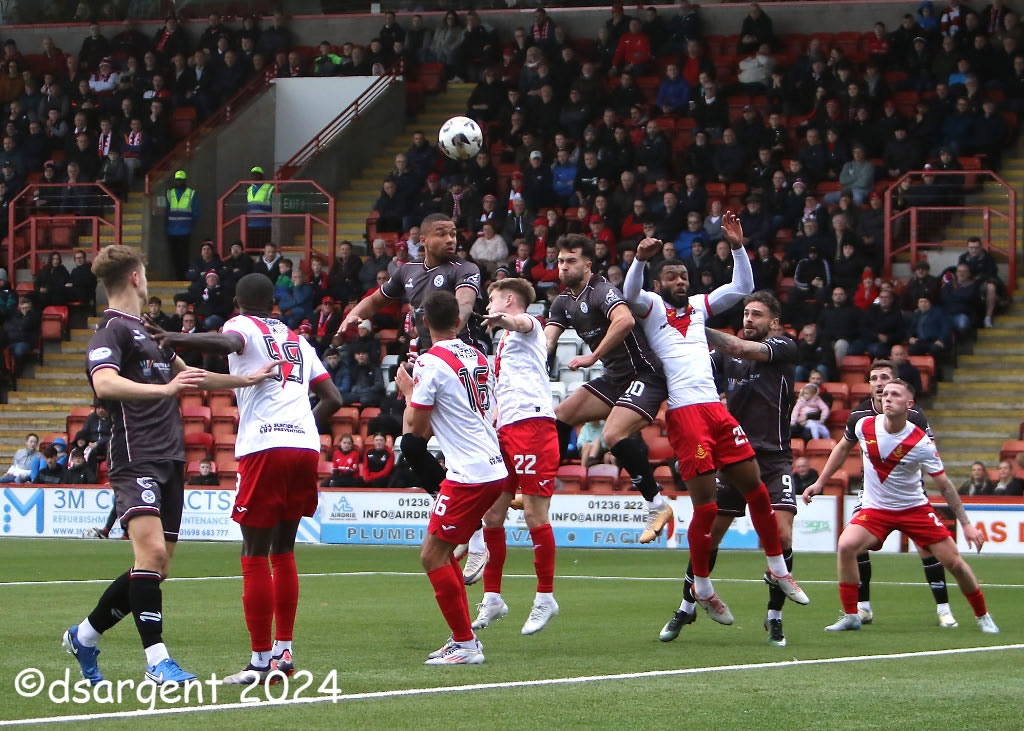Frankie Musonda and Connor McLennan challenge for a cross ball.