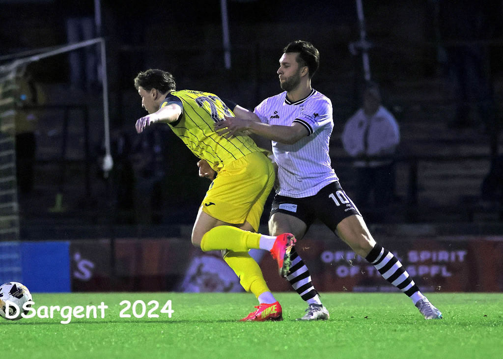 Connor McLennan gets to grips with Nathan Shaw.