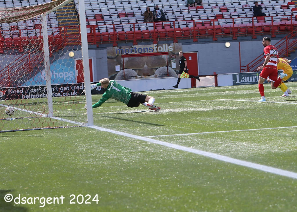 ... Jay Henderson's shot fizzes narrowly past the far post.