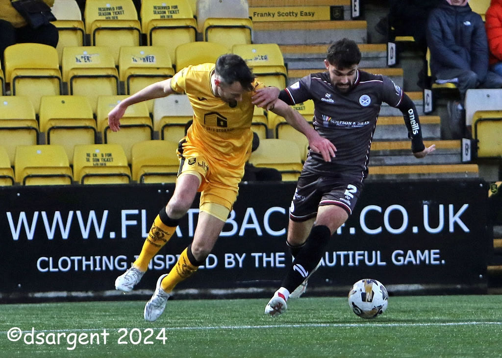 Nick McAllister drives down the right wing.