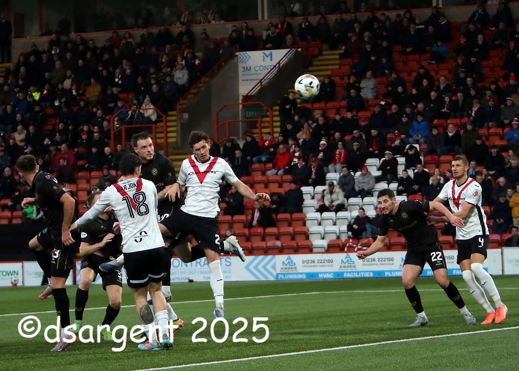 Leon King sends in a powerful header.