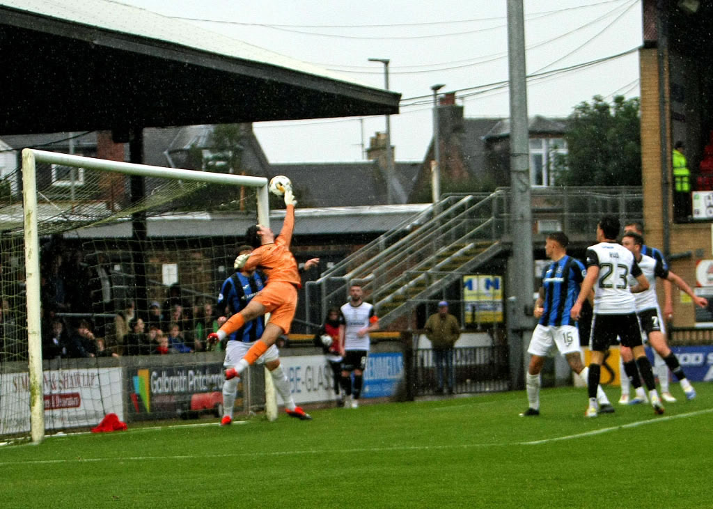 Visiting keeper Connelly tips over an Ethan Walker effort.