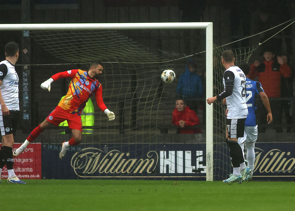 ... Charlie Telfer's free kick beats the wall. 4-2