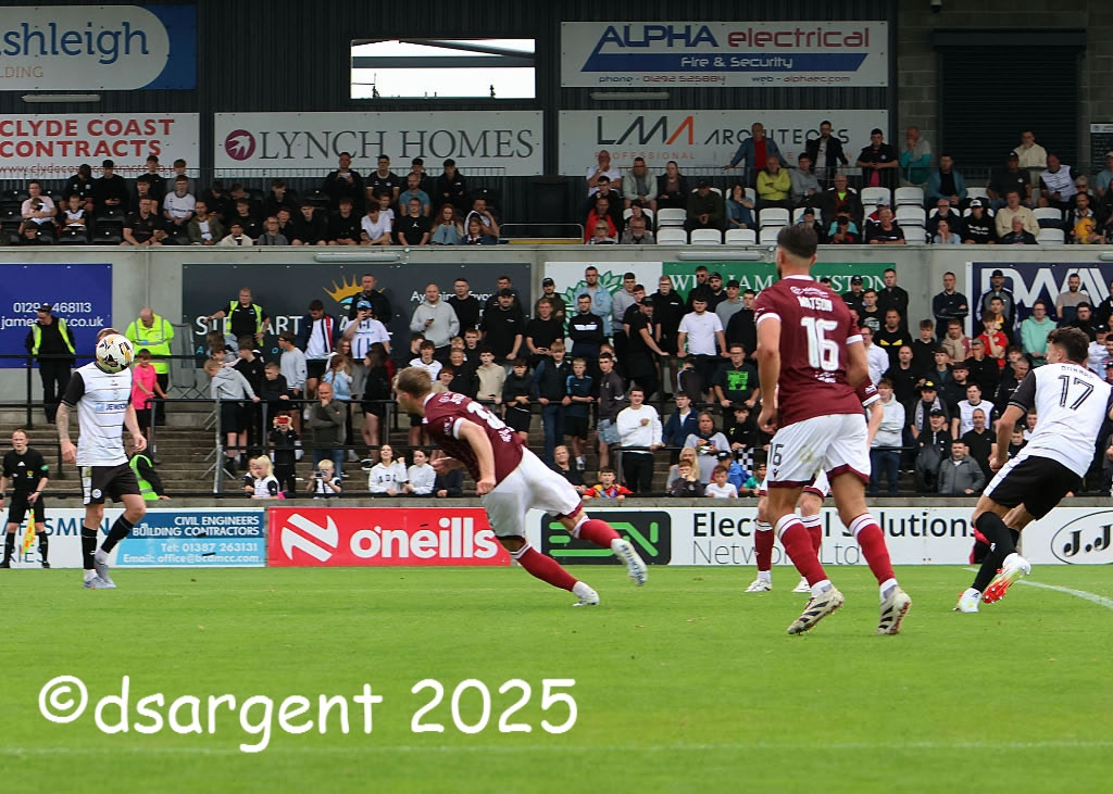 Jude Bonnar meets a loose ball at the edge of the area ...