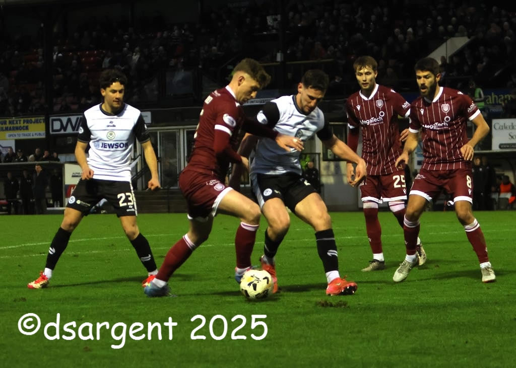 Mark McKenzie is crowded out in the visitors' penalty area.