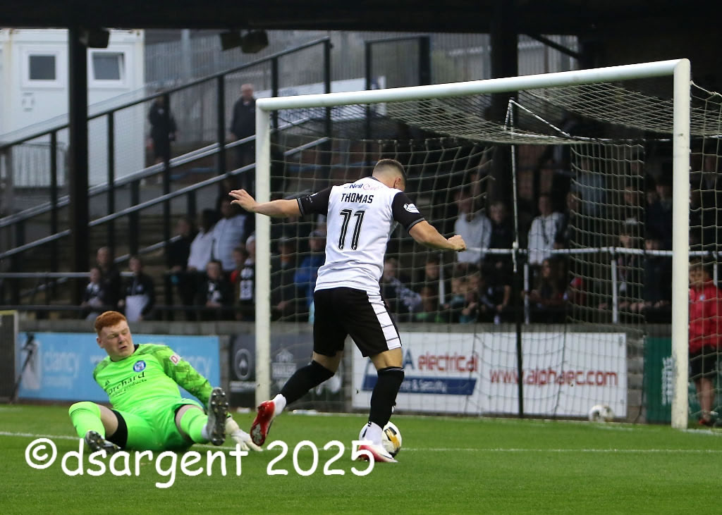 Dom Thomas rounds Forfar keeper Neil Stafford ...