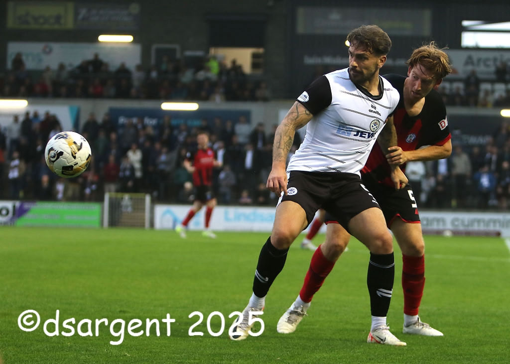 George Oakley holds off his marker.