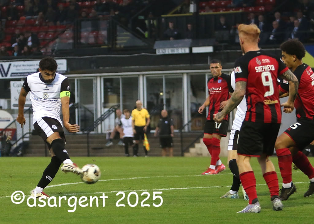 Sub captain Nick McAllister fires a drive for goal.