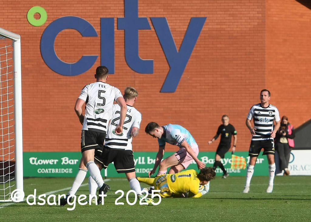 Anton Dowds is foiled by home keeper Calum Ferrie.