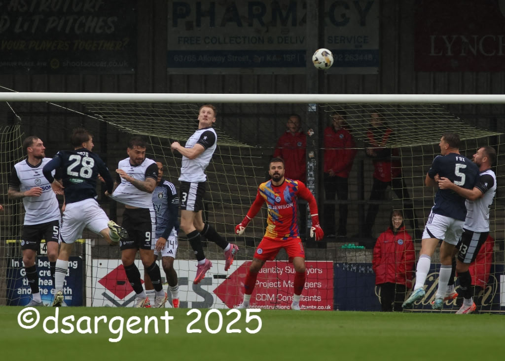 Liam Dick clears a high cross.