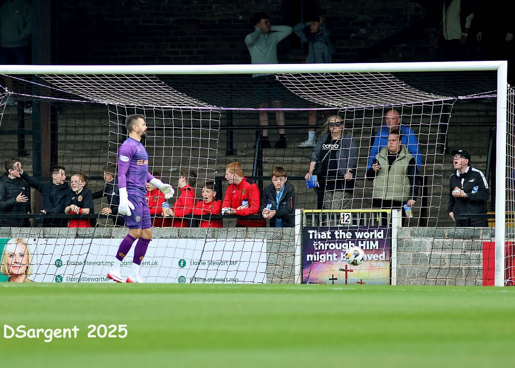 David Mitchell off his line beaten by Dylan Easton. 1-0