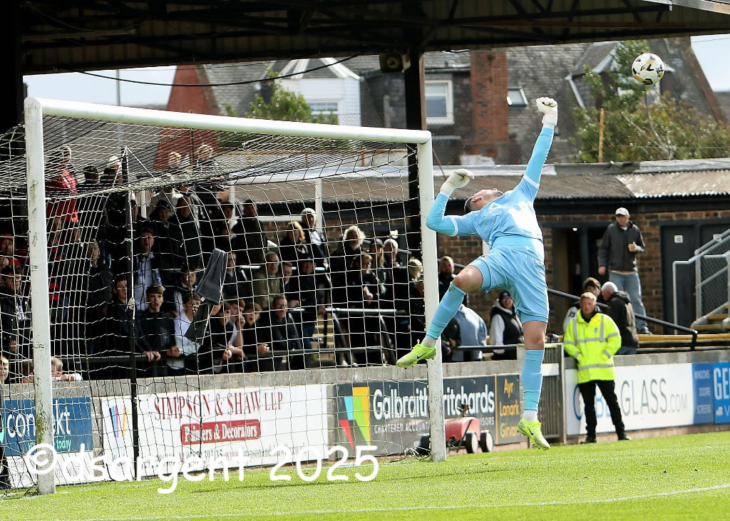 County keeper Ross Laidlaw turns aside a Curtis Main drive.