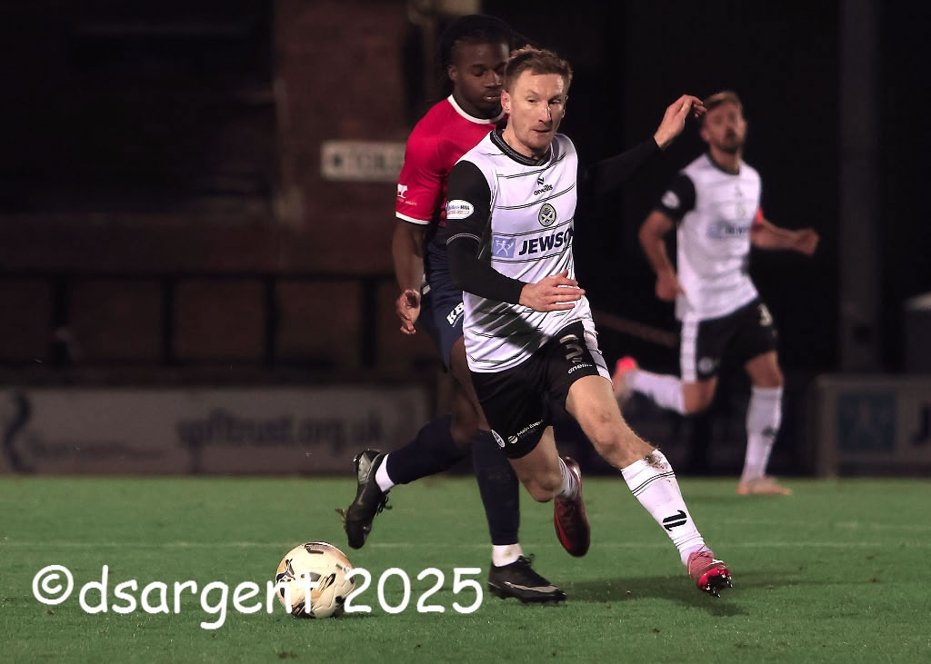 Liam Dick wins possession in midfield.